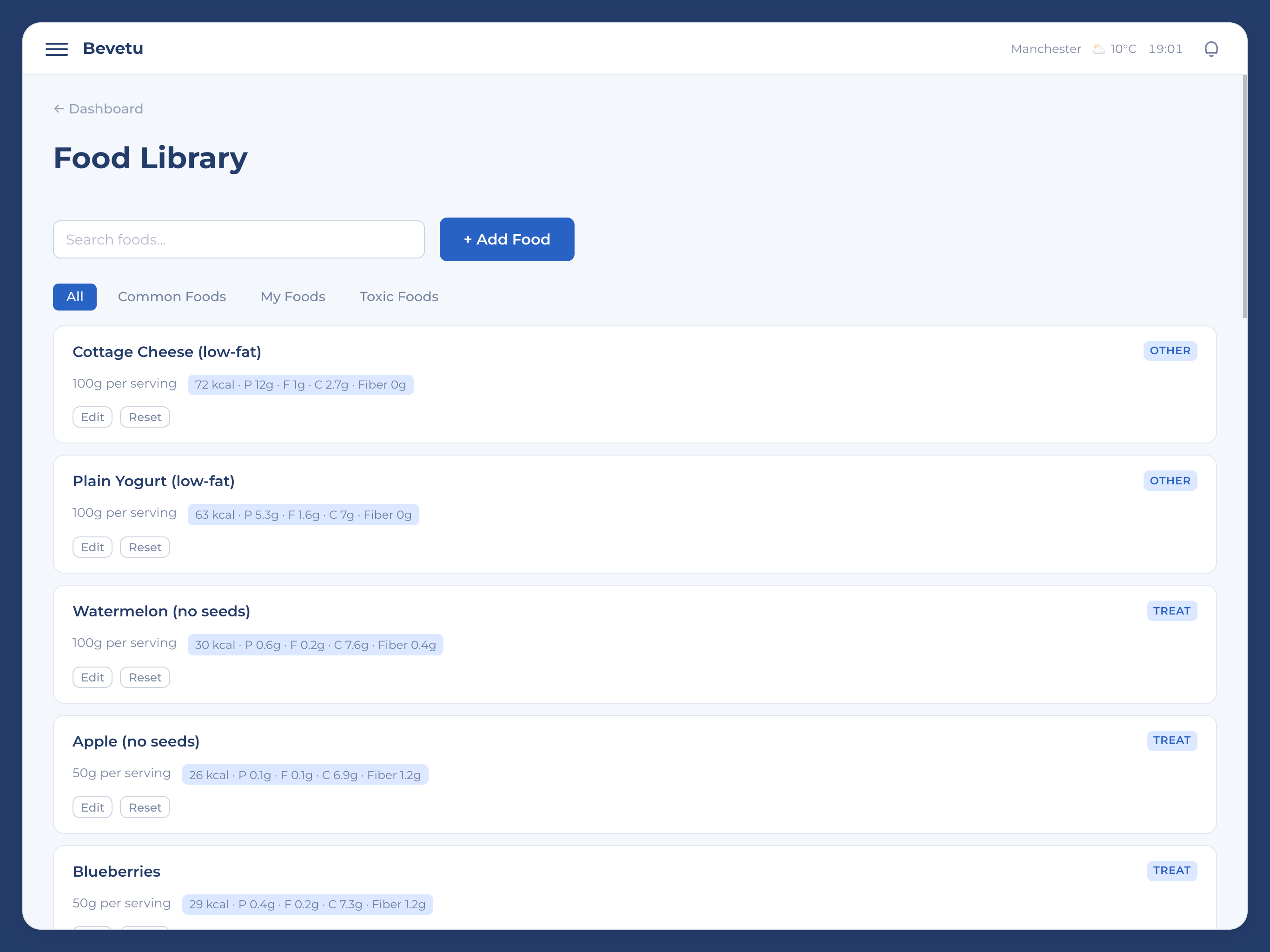 Browse and search a comprehensive food database with toxicity alerts for common household items. Add custom food items and get instant safety checks for what your pet can eat.